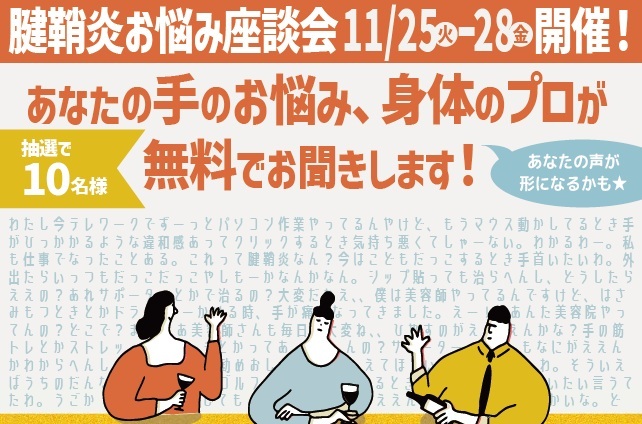 11/25~11/28 【手のお悩み座談会】腱鞘炎サポーター モニター...