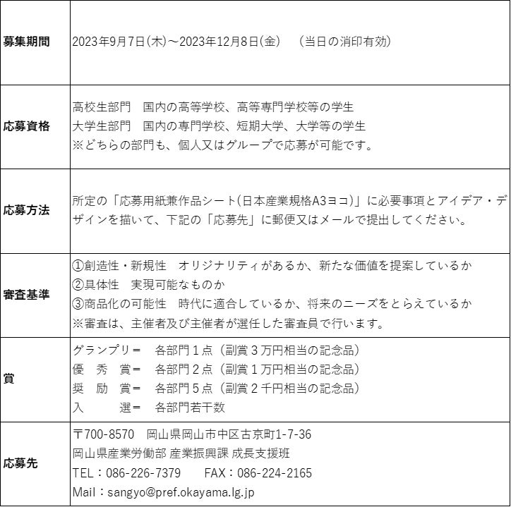 ■「岡山モノづくり★学生アイデア・デザインコンテスト」について