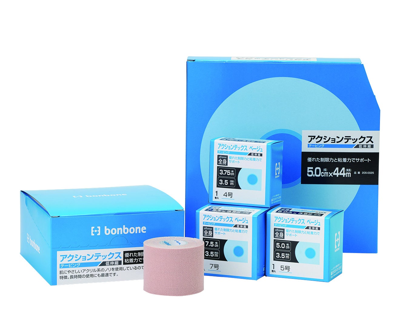 テーピングセットの製品は、低伸縮の肌にやさしい粘着剤を使用したダイヤ工業オリジナルの伸縮固定テープ「アクションテックス」!