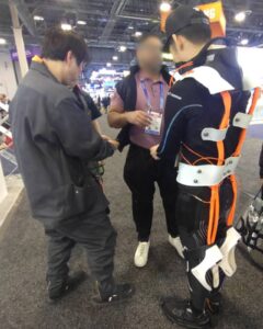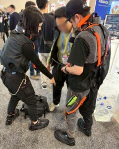 足元の「空気圧ポンプ内蔵シューズ」により、ただ歩くだけでアシストに必要な空気が貯まる構造。これには多くの方が「非常に合理的でスマートだ」と納得されていました。業務の合間に充電を気にしたり、重いバッテリーを背負ったりする必要がなく、歩行という日常の動作をそのまま動力に変える発想は、当社が現場目線で突き詰めてきたからこそ生まれたソリューションでした。